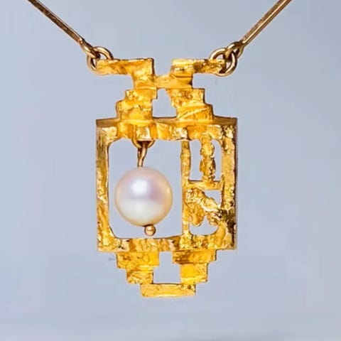 Tarjolla upea kokonaisuus suomalaisen korutaiteen mestarilta Björn Weckströmiltä (s. 1935). “Taikahelmi” on hienostunut ja harvinainen korumalli, valmistettu Lapponialle. Koruissa yhdistyvät 14 karaatin kulta ja viljelty helmi – ajaton yhdistelmä klassista eleganssia ja modernia muotoilua.