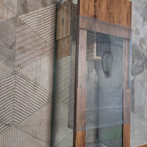 Kehykset siistit, lasit ehjät ja silikonit hyvässä kunnossa.