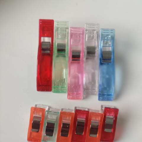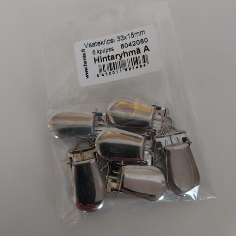 Kangasklipsit 22kpl muovi/metallipidikkeet, mitat 1 cm x 1,5 cm x 2,7 cm.