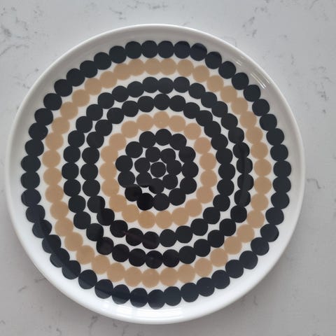 Marimekko Siirtolapuutarha lautanen musta–beige kuviollinen