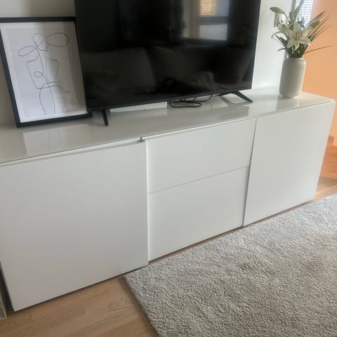 Myydään tv-tasona ollut senkki, keskimmäisten laatikoiden ponnahdussalvat uusittava tai säädettävä, ei aukea painamalla, vaan vetämällä. Muuten hyvässä kunnossa. Ei kolhuja