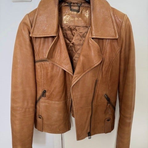 Naisten ruskea nahkatakki - Argentiinasta ostettu ja tehty 100% paikallisesta nahasta. Vuorikangas sileää satiinia. Koko paras XS-S kokoiselle.