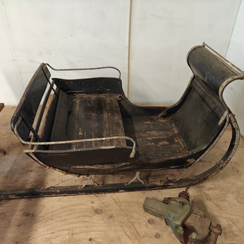 Hyväkuntoinen kirkkoreki. 1950 -luvulla kyläseppä Lauritsalassa on takonut ree'en raudat ja isoisäni tehnyt puuosat.