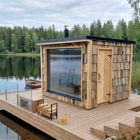 - saunatarvikkeita (kiuas, piippu)