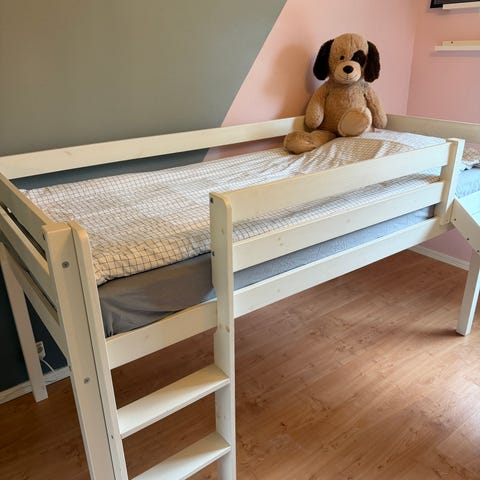 Ehjä Unipuu pikkuparvi työpöydällä. Pöydän saa sängyn alle piiloon. On kolhuja ja naarmuja, turvalaidan sisäpinnalta maalipinta huonossa kunnossa. Halutessaan mukaan saa patjan ja petarin, molemmat uudenveroisia, kun pikkuihminen on mieluummin nukkunut vanhemman vieressä. Petarissa irrotettava, pestävä päällinen. Ei tahroja tms. Myydään muuton vuoksi. Nouto Raision Kaanaalta, voin purkaa valmiiksi.