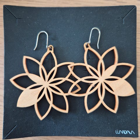 Lilan väriset korvakorut, 5cm leveä ja korkeus 3cm