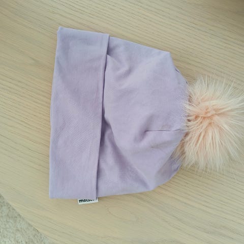 Päällinen puuvilla ja sisäpuolella ohut fleece, tupsu irrotettavissa.