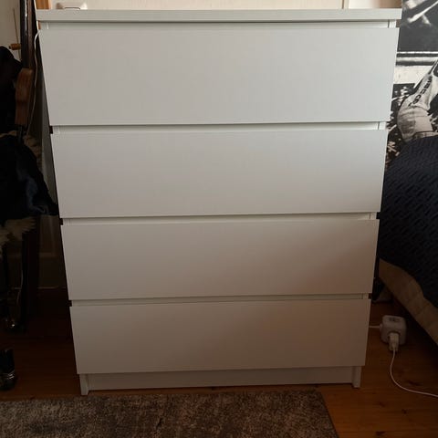 Myydään kuin uusi Ikean Malm lipasto, neljällä laatikolla. Ollut alle vuoden käytössä, ja vain siistissä säilytyksessä.