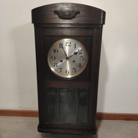 Vanha amerikkalainen punttikello,joka on stailattu nykyaikaan,patterikoneisto,valot,sisälle mahtuu juomat."pullopiilo". Mitat k.76cm l.42cm. Lasioven upea maalaus,ikäänsä nähden hienossa kunnossa n.1900luvun alusta.
