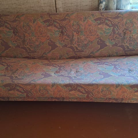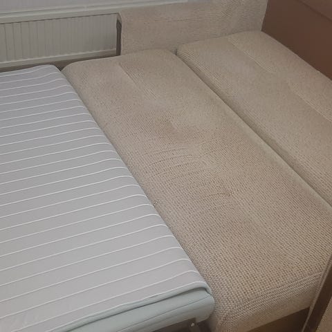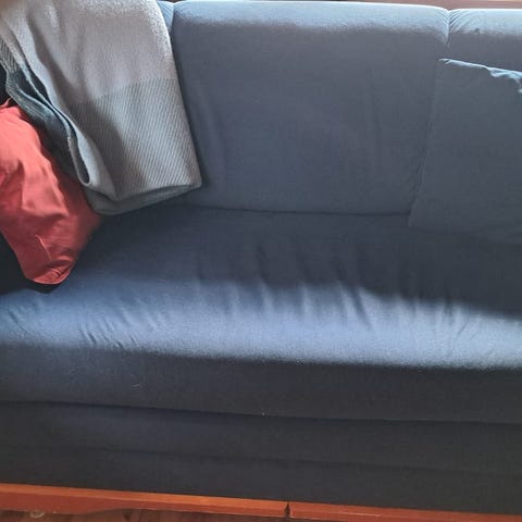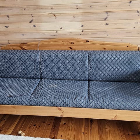 Kuvan mukainen vuodesohva. Ehjä patjaosa. Vuodevaatelaatikko alla.