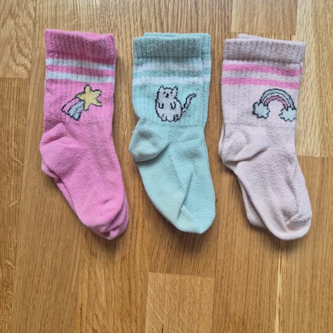 Myydään Lindex:in sukkia 5 paria koossa 22/24. Ehjiä paitsi yhden sukan varren resorissa purkaumaa joka ei meillä ole vaikuttanut käyttöön.
