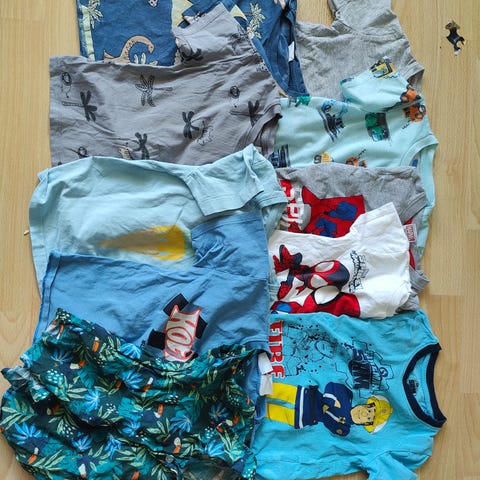 Ehjät, siistikuntoiset vaatteet kokoa 86/92. Paketissa yhteensä 17 eri vaatetta, yksi muumi haalariasu, yksi huppari vetoketjulla, 5kpl collegepaita ja 10kpl pitkähihainen puuvillapaita. Kaikki yhteensä 15€. Nouto Karhunmäestä.