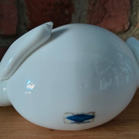 Kaunis valkoinen väri, virheetön ja singeerattu. Korkeus on noin 7cm ja leveys on noin 13cm.