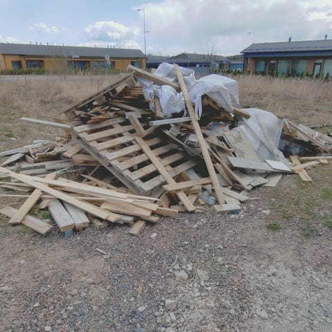 Sekalainen erä puisia lavoja ja muuta puutavaraa polttopuuksi. Viereen pääsee isommallakin autolla.