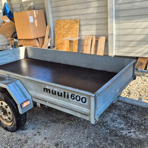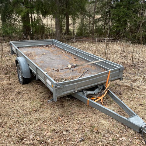 Näppärä nokkapyörällinen pieni peräkärry, lava 2 x 1,1 metriä, laidan korkeus 20 cm. Valot, laakerit, vetokytkin ym. huollettu. Hyvät renkaat. Etu- ja takalaidat irrotettavia. Lava ja laidas sinkittyjä, akselisto ruostesuojattu. Helppo liikuteltava käsinkin, omapaino vain 120 kg.