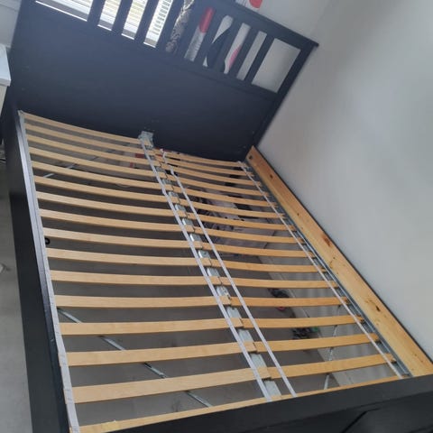 Sänky on tosiaan täyspuuta joten painaa jonkin verran, tuo omat kantajat. Neljäs kerros eikä mahdu hissiin. Saatiin kyllä kahden naisen voimin kannettua ihan ok ylös.