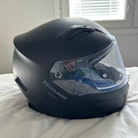 Course umpikypärä moottoripyöräkäyttöön. Kypärässä on täyskate, suljettava visiiri ja ilmanvaihtoaukot yläosassa. Väri on mattamusta. Sisäosa on pehmustettu ja leukaremmi pitää kypärän paikoillaan. Soveltuu moottoripyöräilyyn ja muuhun moottorikäyttöiseen ajamiseen, jossa vaaditaan umpikypärää.