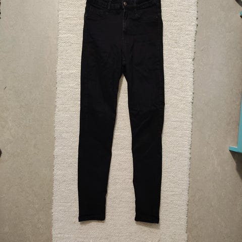 FB Sister Skinny Push Up naisten farkut. Malli on kapealahkeinen skinny push up. Vyötärökoko on W30 ja arvioitu naisten koko M. Väri on musta. Sopivat arki- ja vapaa-ajan käyttöön.