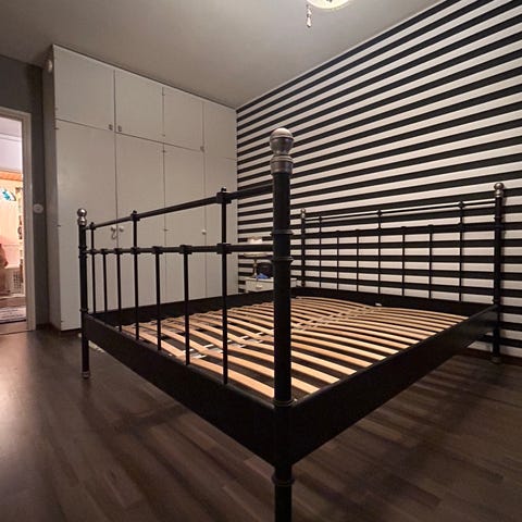 Myydään IKEA:n metallinen valkoinen sänky. Säädettävä pituus, jonka saa max 200cm pitkäksi. Leveys 80cm. Puinen sälepohja, musta patja ja petari tulevat mukaan. Liila kukkapatja ei kuulu ilmoitukseen. Hyvä ja siisti kunto. Ruuvit eivät ole alkuperäiset. Kaiken kaikkiaan hyvä sänky.
