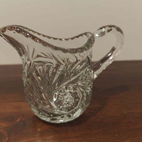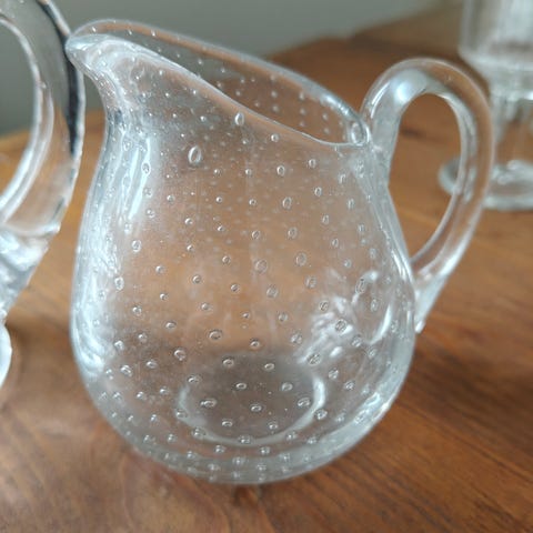 Todennäköisesti Riihimäen lasin valmistama Eero Sallisen suunnittelema "Pore-mallinen kermakko, jota on valmistettu piikkimuottiin puhaltamalla vuosina 1949-1964