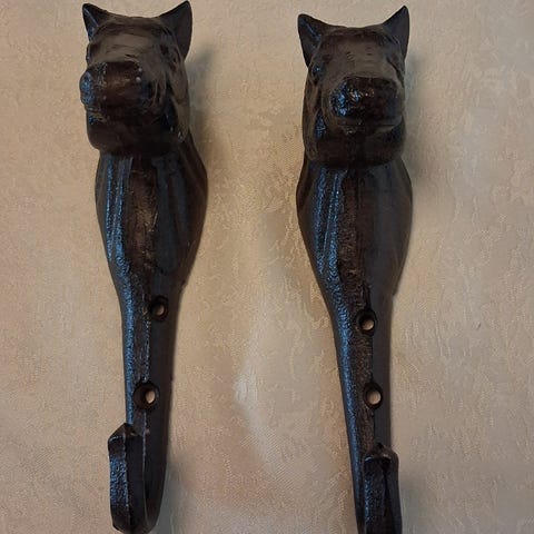 Kaksi metallista vaate/pyyhekoukkua