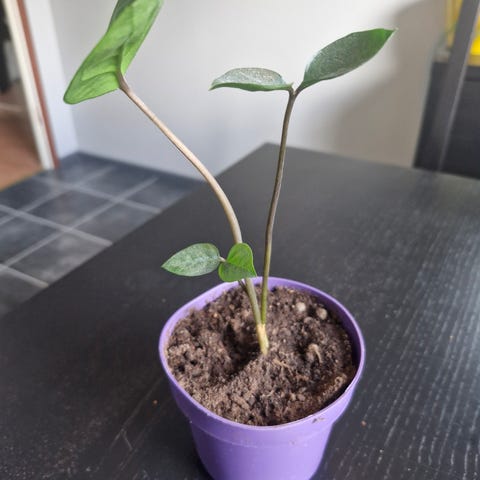Viherkasvi muovisessa ruukussa. Sopii sisätiloihin, esimerkiksi ikkunalaudalle tai pöydälle. Kasvilla on pitkät, kapeat vihreät lehdet ja se on istutettu mustaan ruukkuun, jonka alla on aluslautanen. Jukka palmu ja Korkeus 50cm.Latvasta laitettu kasvamaan joka vuosi uudestaan ,jotta ei kasva liian korkeeksi.