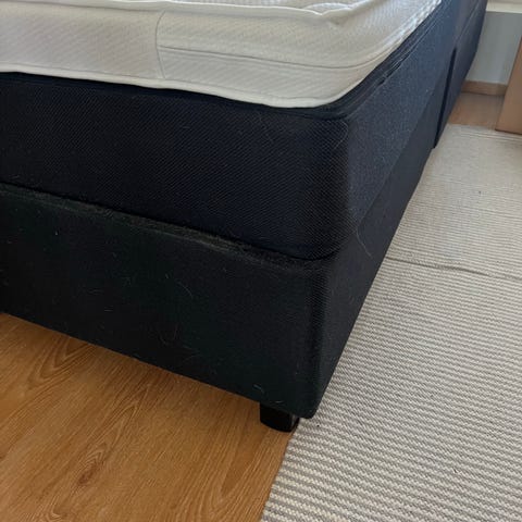 Jysk sänky ja patja. Kokonaisuuteen kuuluu musta sänkyrunko ja valkoinen, kuviotikkauksella viimeistelty patja. Patja on suorakaiteen muotoinen ja sen päällinen on vaaleaa kangasta tummalla reunakantilla. Sänky soveltuu yhden tai kahden hengen nukkumiseen koosta riippuen. Runko ja patja muodostavat yhtenäisen kokonaisuuden makuuhuoneeseen. Patja on siisti. Oli käytössä vain 8kk. Myyn koska ei sovi uuden asunnon.