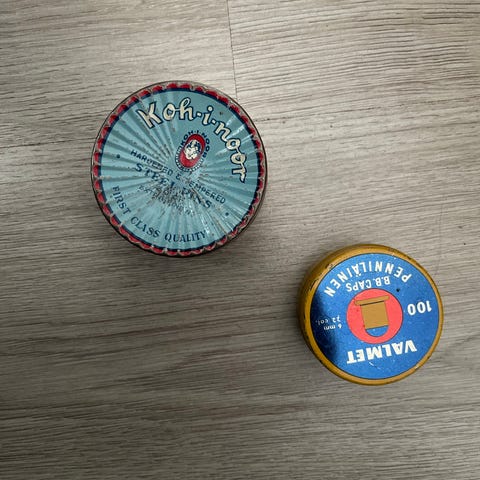 Vanha, ruosteinen peltipurkki varaston kätköistä.