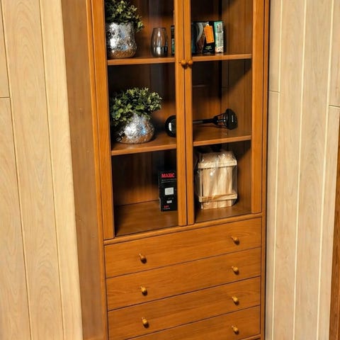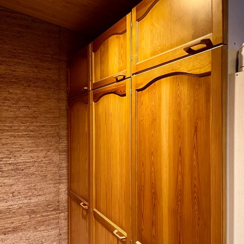 Oik.yläkaappi astiakaappi, muissa kaapeissa hyllyt myös korkeassa kaapissa hyllyt.