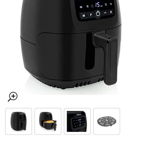 Owh 100€ Tristar FR-6999 on digitaalinen airfryer-rasvakeitin. Laitteessa on noin 6 litran paistokori ja musta ulkokuori. Ohjaus tapahtuu etupaneelin digitaalisella näytöllä ja kosketuspainikkeilla. Airfryer soveltuu esimerkiksi ranskalaisten, kanan ja muiden ruokien kypsentämiseen kuumailmatekniikalla. Irrotettava kori helpottaa puhdistusta.