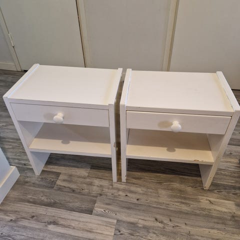 2 kpl valkoiset yöpöydät laatikoilla. Ehjät,siistit vähän kulumaan.