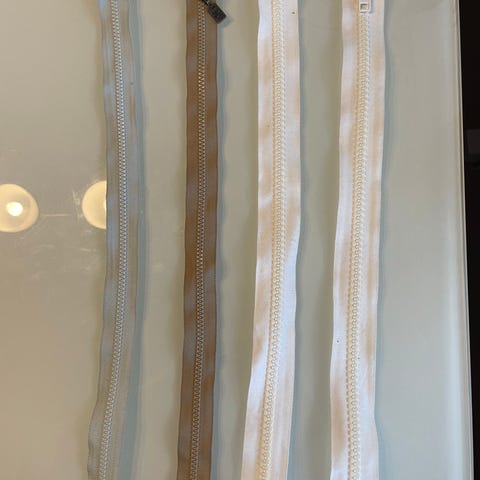 Valkoiset vetoketjut ompeluun ja käsitöihin. Sopivat esimerkiksi vaatteisiin, pussukoihin, tyynyihin ja muihin tekstiilituotteisiin. Muovihampaiset vetoketjut, joissa valkoinen liukusäätimen vedin (metalli).
