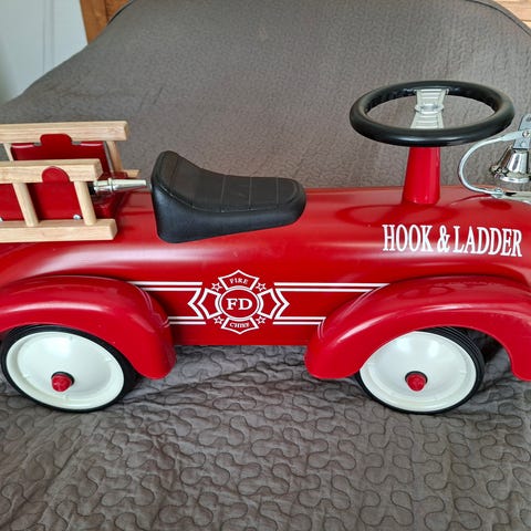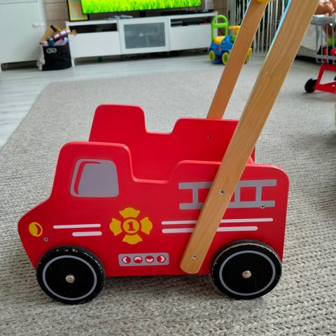 Puinen paloauto, jonka päällä voi istua ja ohjailla ,kääntyvät etupyörät I'm toy laadukas valmiste.
