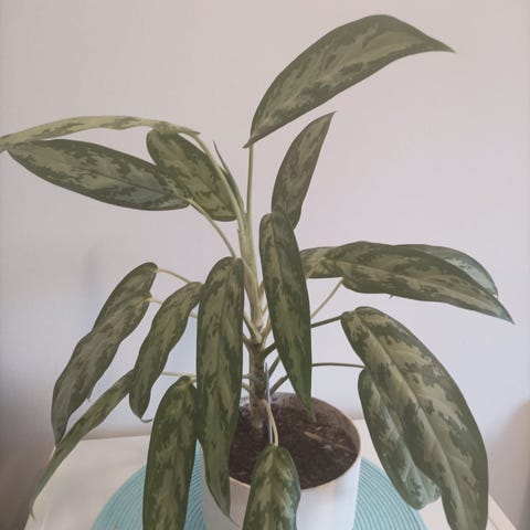 Kukintaa ei ole, vain runko ja lehdet ovat jäljellä. Alkuperäinen väri on viininpunainen