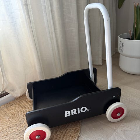 Myydään BRIOn musta taaperokärry tarpeettomana. Säädettävä työntöaisa ja renkaiden vastus taitotason mukaan. Muutamia kosmeettisia kolhuja (kuvassa), mutta aivan toimiva peli. Vain nouto.
