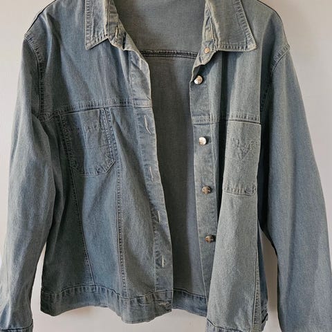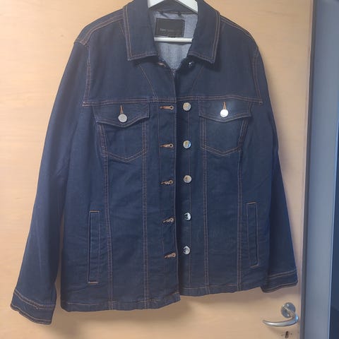 Käytetty Elloksen farkkutakki kokoa 46, pesun jäljiltä. Kulutettu look, edessä brodeeraus Dreaming. Materiaali puuvilla/elastaani.