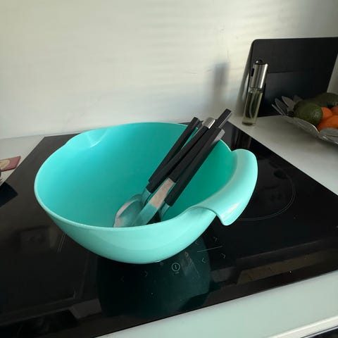 IKEA kulho ja aterimet muovi ja metalli turkoosi ja musta