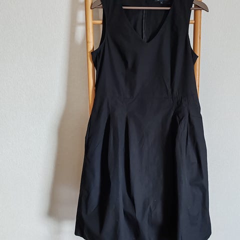 Musta pellavamekko, koko L. Laskokset helmassa ja vetoketju takana. Todella hyväkuntoinen ja vähän käytetty.