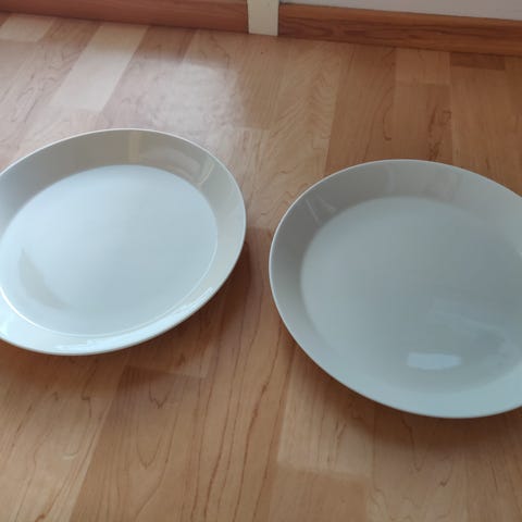 Iittalan punaista Teemaa, 22 cm halkaisijaltaan olevat syvät lautaset. Kovassa käytössä olleet, kulumaa on mutta ei kolhuja/ säröjä. 8 kpl yhteishinta 15€. Nouto Kaakkurista.