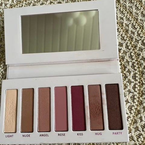 "Enchantment luomiväripaletti, jossa on viisi eri sävyä. Paletissa on vaalea mattasävy, kaksi glitter- tai hohtosävyä sekä kaksi tummempaa sävyä. Sopii silmämeikin tekemiseen arkeen ja juhlaan. Pakkaus on suorakaiteen muotoinen ja siinä on läpinäkyvä kansi, josta sävyt näkyvät läpi."