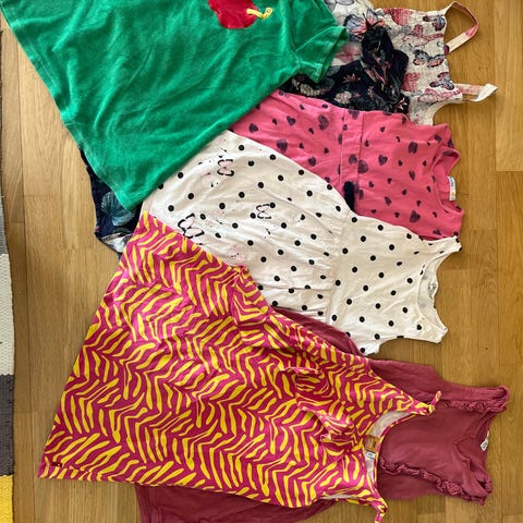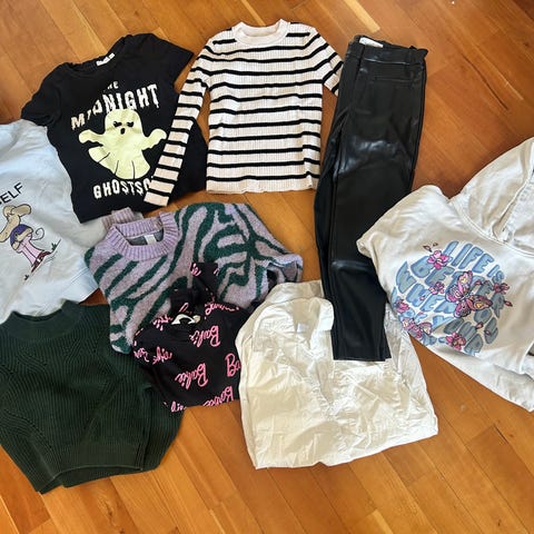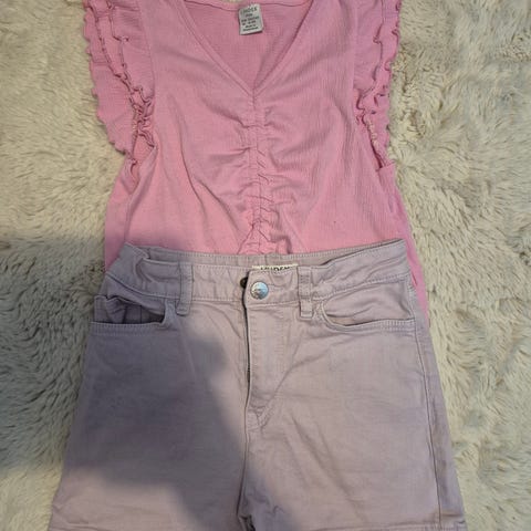 H&M tyttöjen vaatesetti, koko 134/140. Collegemekko, leggingsit, kahdet farkkushortsit sekä hihaton toppi. Siistinkuntoiset ja hajusteettomasti pestyt.