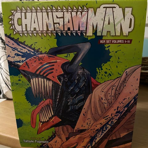 Chainsaw Man Box Set volumet 1-11 englanninkieliset. Täysin uudenveroisessa kunnossa, ensimmäistäkään volumea ei ole luettu. Settiin kuuluva juliste mukana, sekin täysin uudenveroinen. Setti ollut vain hyllyssä.