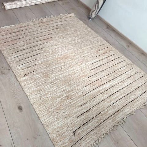 Myydään vaalea kudottu puuvillamatto, koko 134 × 200 cm. Ihanan pehmeä jalan alla.