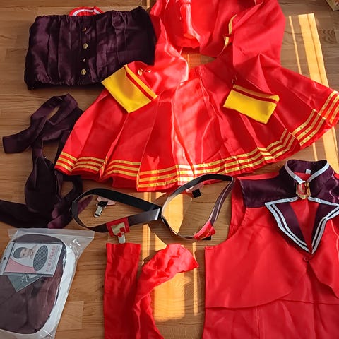 Ninja asu. Kaikki kuvassa olevat tulee mukaan. Kokomerkintä lasten xs, arvioisin että 122/128 max.130. Haku Muurolasta tai tuon Rovaniemelle Prismalle tai keskustaan. Käteinen tai Mobilepay.