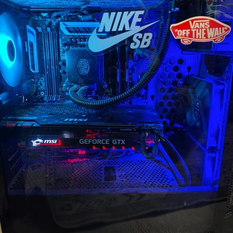 Pyörittää peliä kun peliä täysillä grafiikoilla ilman mitään ongelmia. Mukaan tulee kaksi näyttöä, hiiri, hiirimatto ja näppäimistö. GeForce GTX 1080 ti 11g näytönohjain. Tinkimisvaraa löytyy, jos osaa.