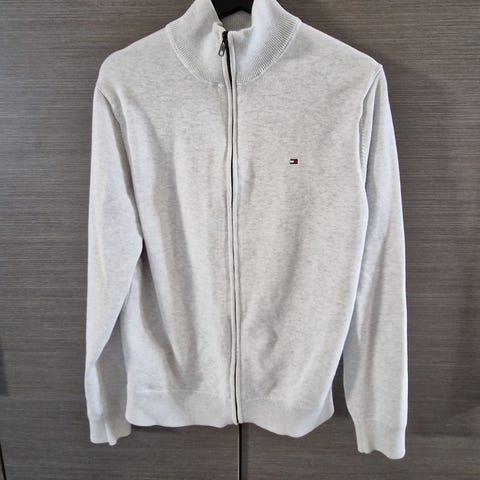 Tommy Hilfiger miesten neuletakki, koko L. Väri tummansininen. Materiaali puuvillaa. Mallissa on kokopitkä vetoketju edessä ja korkea ribbineuloskaulus, jonka sisäpuolella on raidallinen yksityiskohta. Hihansuut ja helma ovat joustinneulosta. Sopii käytettäväksi arjessa esimerkiksi paidan tai t-paidan päällä.