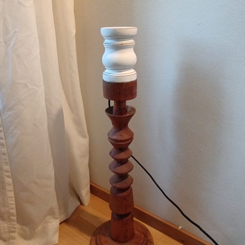 Jalkalamppu ”suolakivimäisellä” pinnoitteella. Yön hämärässä jalkalamppu luo todella tunnelmallisen valaistuksen. Lamppu valaisee hyvin laajasti, mutta ei ole todella kirkas. Valo toimii johdossa olevan painikkeen avulla.