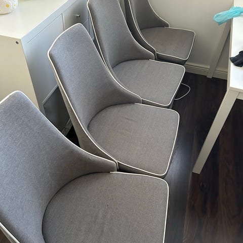 Tuolit ovat olleet käytössä 4 vuotta. Ne ovat edelleen siistit ja tukevat istua, mutta tämän ikäisissä tuoleissa on jo normaalia käytön jälkeä.