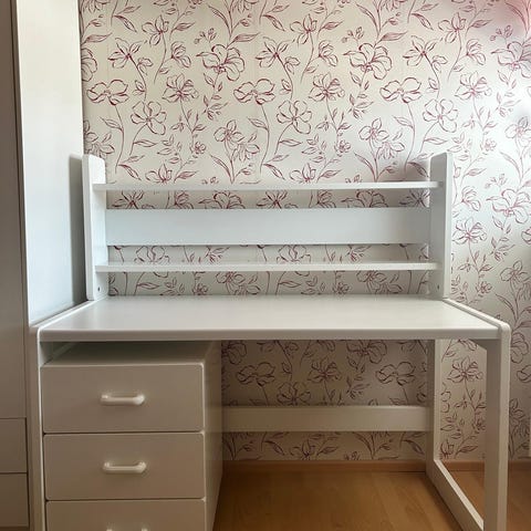 Myynnissä Vepsäläisen koivusta tehty työpöytä. Kuluman jälkeä on, mutta edelleen tästä saisi hyvän työpöydän jollekin opiskelijalle. Työpöydän mitat: leveys 125cm, syvyys 62cm, korkeus 70cm ilman koroketta, korokkeen kanssa 73cm. Työpöydän erillinen laatikosto: leveys 42cm, syvyys 51,5cm ja korkeus 60cm.