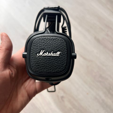 Marshallin over-ear kuulokkeet mustana, irrotettava kierrejohto ja 3,5 mm liitin. Pehmeät korvatyynyt ja säädettävä sanka.